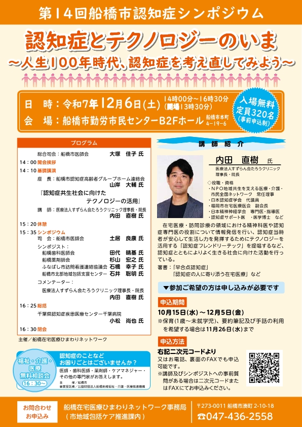 12月6日に第14回船橋市認知症シンポジウムが開催され、内田院長が基調講演を行います。